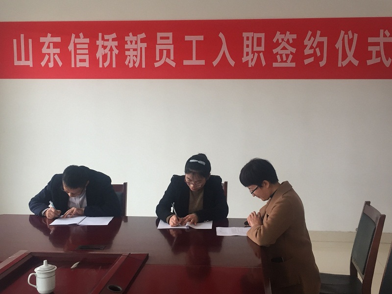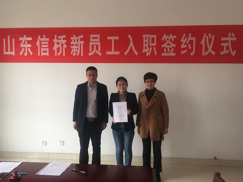2018年11月30日下午3點(diǎn),新員工入職簽約儀式在泰安信橋二樓會(huì)議室舉行,公司副總石振偉與新員工李佳欣參加,同時(shí)公司財(cái)務(wù)總監(jiān)張燕與人事人員出席。