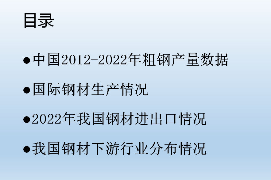 •我國現(xiàn)階段已經(jīng)初步實(shí)現(xiàn)城鎮(zhèn)化的建設(shè),隨著房地產(chǎn)需求的下滑,我們普通鋼材很難有一個(gè)大的增量,但是我國的特殊鋼材還有很大的發(fā)展空間。結(jié)合國家鋼材發(fā)展現(xiàn)狀,我們也慢慢的理解公司制定“高端、國有、人無我有”政策的現(xiàn)實(shí)依據(jù),希望大家能出通過了解行業(yè)發(fā)展的方向,明確目標(biāo),開發(fā)客戶,更好的規(guī)劃自己的銷售,取得好的業(yè)績。